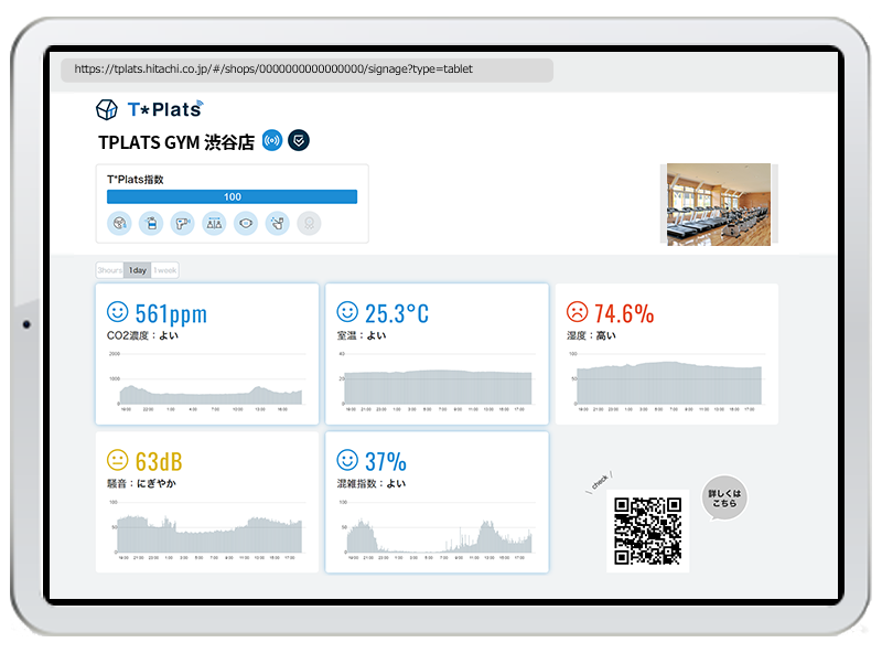 - T*PLATSクラウドで表示モードが設定可能で、店舗や施設内のディスプレイ、タブレットなどに表示することが可能です。設置後、センサーを追加することは可能です。